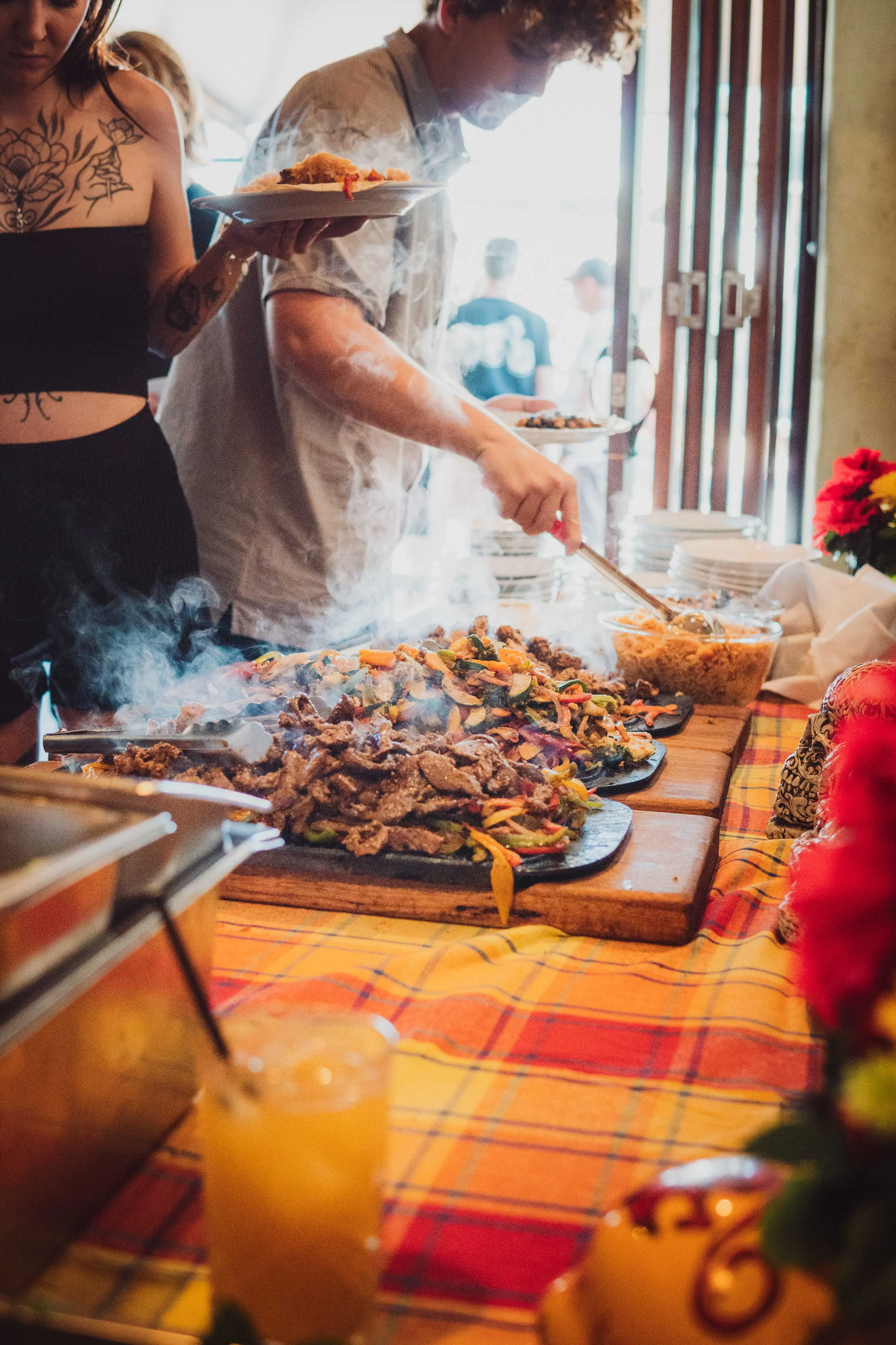Our team prepares and serves a range of dishes while guests help themselves and mingle.